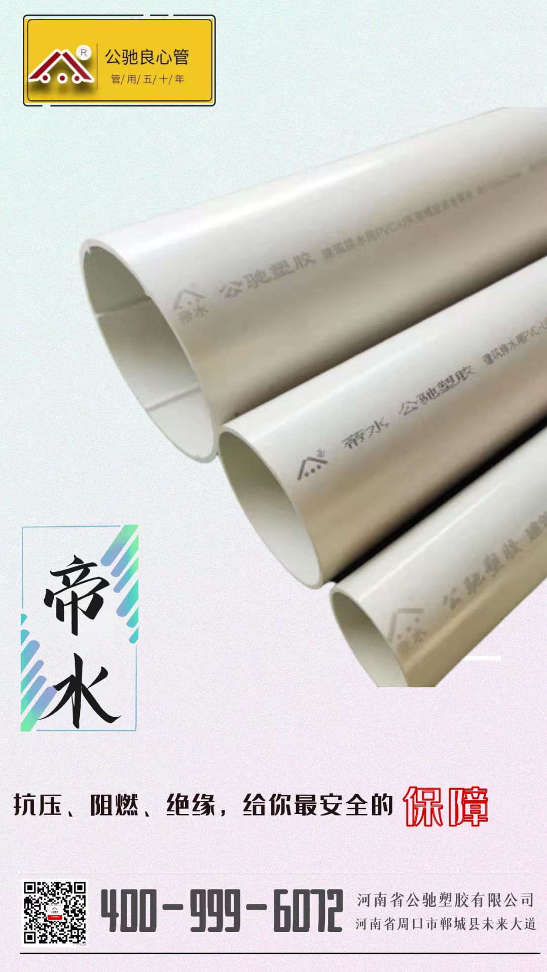 河南省公馳塑膠有限公司主要產品有PE給水管材、管件;HDPE排水管;PE、MPP、CPVC、電力穿線管;檢查井;PVC-U給水、排水管材、管件;電工導管;PP-R給水管材、管件;PE-RT地板輻射采暖管等百余個系列,數千個品種。
